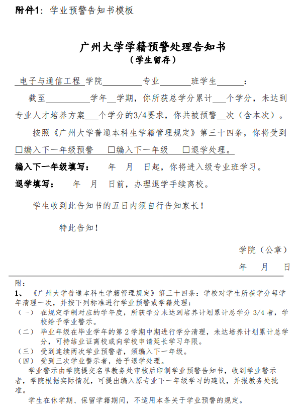 附件1:学业预警告知书模板