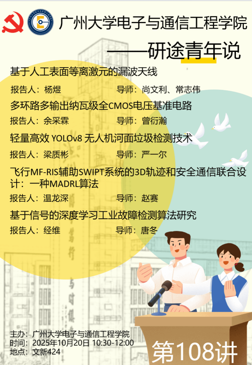”第108讲于10月20日10:30-12:00在文新楼4249举行。本次主讲人为23级研究生杨煜、余采霖、梁质彬、温龙深和经维。