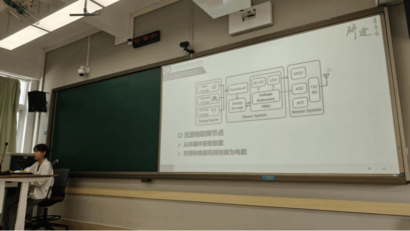 余采霖同学汇报的主题是多环路多输出纳瓦级全CMOS电压基准电路.针对无源物联网节点对电压基准电路 “超低功耗、高集成、高电源抑制比” 的需求,提出多环路多输出纳瓦级全 CMOS 电压基准电路。该电路无需特殊器件,通过 PTAT 电压产生电路、电压转电流电路及多环路有源负载设计,解决 “无特殊器件获基准电压”“超低功耗下实现多输出” 难题。实测显示,电路版图仅 69μm×88μm,VREF1 温度系数均值 39.36ppm/°C,电源抑制比等性能优异,可满足无源物联网节点中 ADC、LDO 等模块的稳定基准电压需求。