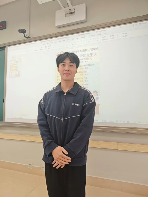 胡瑞峰同学汇报的主题是基于大型全可动射电望远镜反射面精度的风载仿真,他的讲解主要包含以下4个部分:选题背景及意义、现状与研究目标、研究方法与过程、研究结果。汇报主要介绍了影响射电望远镜精度的因素,以及平均风和脉动风的特性,然后讲述了国内外学者分别通过理论分析、风洞试验、现场实测和数值模拟的方法来研究风扰对大型射电望远镜的影响,在研究过程中通过使用Davenport风速谱计算风载,基于ABAQUS的二次开发进行361种工况下的仿真模拟,基于最小二乘原理计算反射面精度,最终展示实验成果,比较了俯仰角、风向角与精度的变化规律,对大口径射电望远镜的建设与风扰研究具有参考意义。