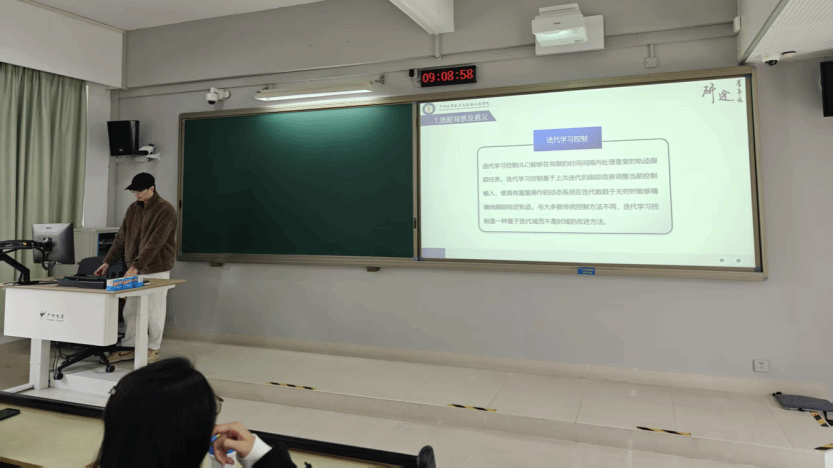 吕欣泽同学介绍的主题是面向隐私保护的网络迭代学习控制。立题基于迭代学习控制在重复任务精确跟踪中的优势,以及网络控制系统的灵活性与资源共享特性,同时针对网络传输中数据丢失、隐私安全等问题,提出将迭代学习控制理论与加密技术结合的解决方案。通过文献调研,他发现双端数据丢失的网络控制系统隐私安全研究存在空缺,核心研究问题包括设计数据丢失补偿的迭代学习控制器、信号加密解密及有效性验证和加密信号的算法设计。研究创新点在于用伯努利随机变量表征数据传输状态,结合多种技术提出加密信号的算法等,后续将围绕量化误差、密码参数设置和数据丢失补偿展开理论研究。