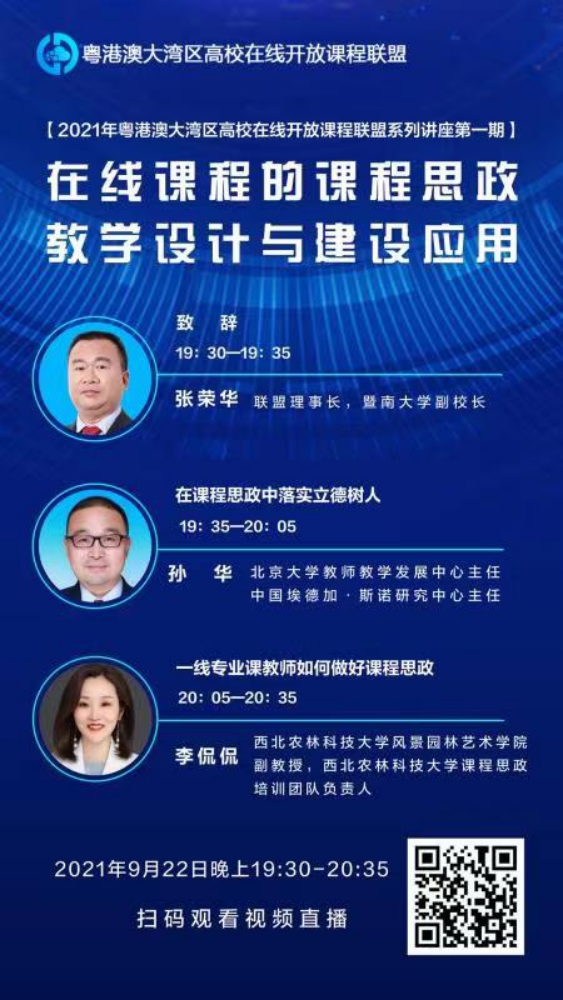 2021年粤港澳大湾区高校在线开放课程联盟系列讲座第一期:在线课程的课程思政教学设计与建设应用