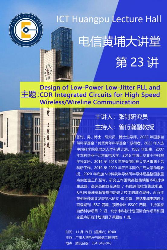 电信黄埔大讲堂第23讲:Design of Low-Power Low-Jitter PLL and CDR Integrated Circuits for High Speed Wireless/Wireline Communication
