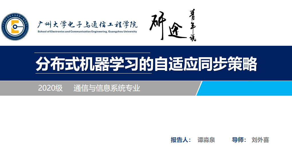 主办的“沿途青年说”第24讲于10月18日下午16:00-17:20在线上(腾讯会议:392-986-363)举行。本次主讲人为20级研究生罗钧明和谭淼泉,主题分别为基于可编程数据平面的机器学习技术和分布式机器学习的自适应同步策略。