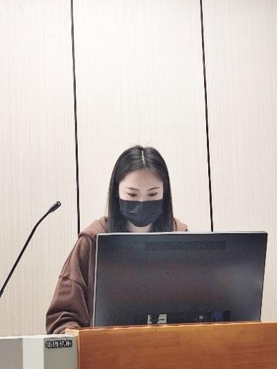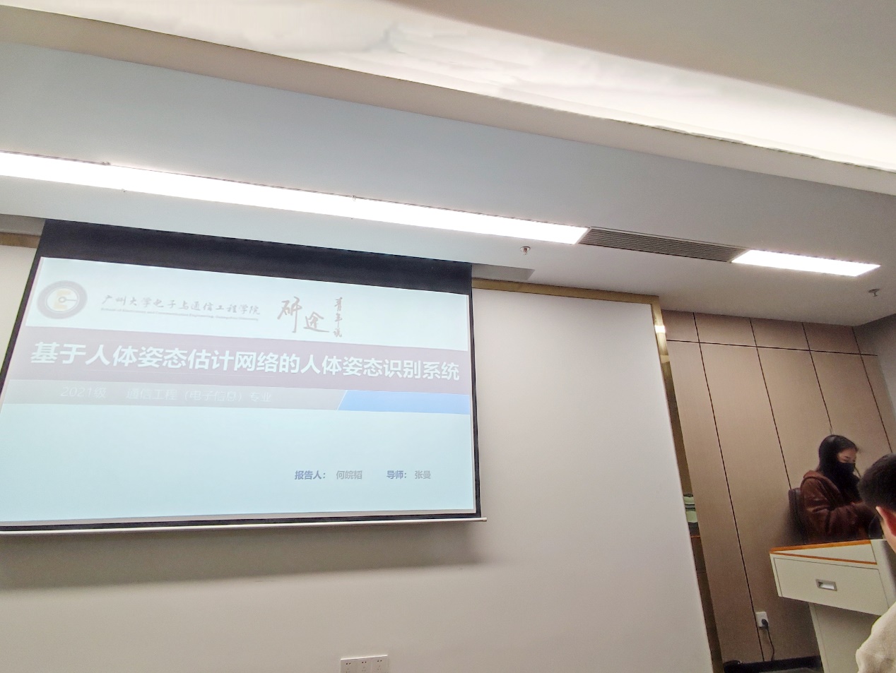 何皖韬同学汇报的主题是基于人体姿态估计网络的人体姿态识别系统,她的讲解主要包括以下三部分,背景及意义、研究内容和研究结果及分析。她首先阐述了该研究目的是具体任务目标是通过计算机等利用传感器设备来模拟人类的视觉感知处理能力,无需人为引导及干预即可实现从视觉图像或视频数据中挖掘潜在信息,实现信息及知识的高维语义转化和提取,基于高级语义信息进一步实现下游任务。紧接着她对研究内容进行了概括:判断是否输出位置预测,若有,对图片进行处理后,输入人体姿态估计网络;通过人体姿态估计网络输出人体关键点坐标;将关键点坐标输入姿态分类网络,输出行为类别。最后她为我们解释了该研究的难点所在:通过目标检测得到的目标框信息对图片预处理;输入姿态估计网络对每个对象输出关键点坐标。