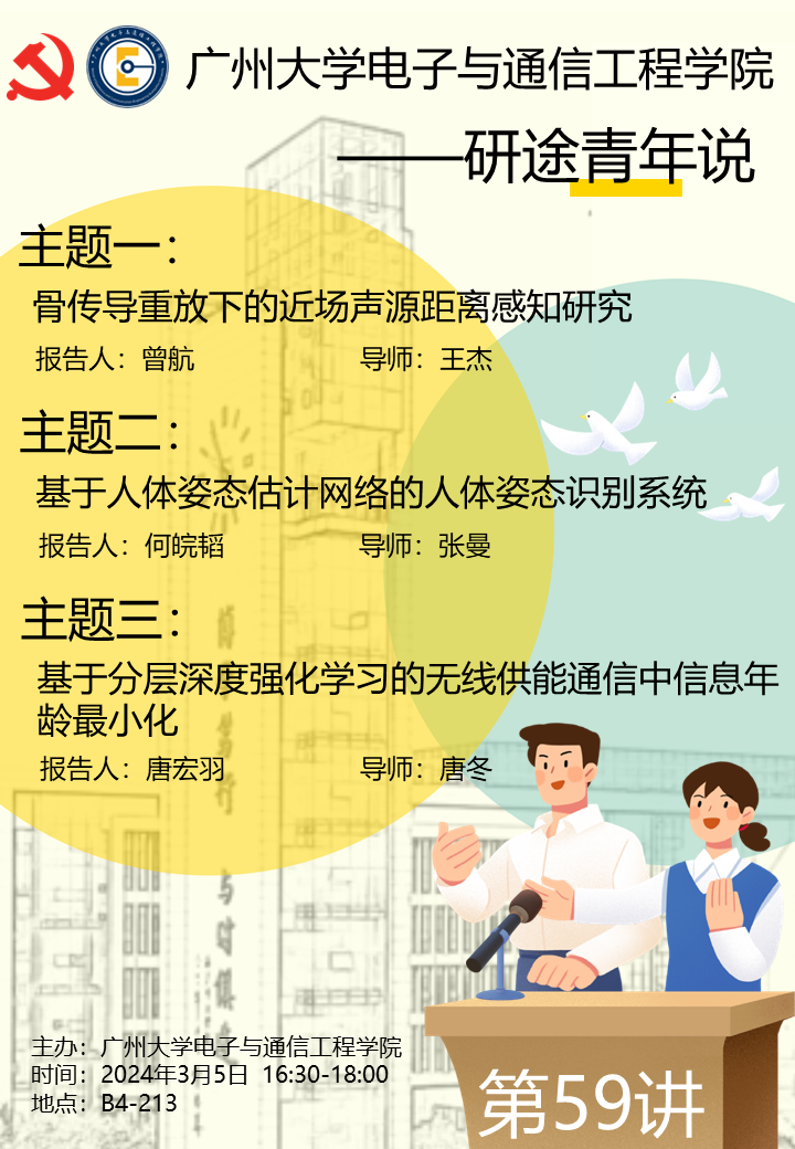 ”第59讲于2024年3月5日16:30-18:00在B4 - 213举行。本次主讲人为21级研究生曾航、何皖韬和唐宏羽。