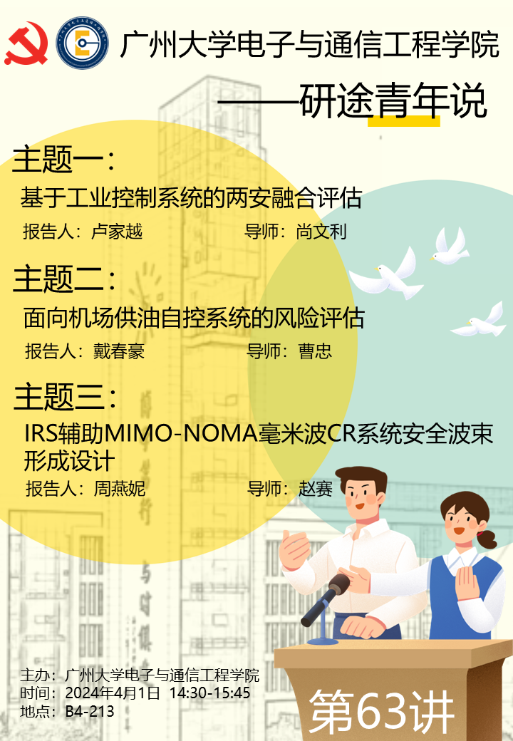 ”第63讲于4月1日14:30-15:45在B4-213举行。本次主讲人为21级研究生卢家越、戴春豪和周燕妮。