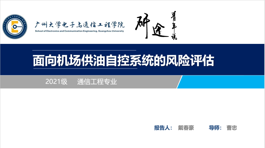 戴春豪同学汇报的主题是面向机场供油自控系统的风险评估,他的讲解主要包含以下五个部分:研究背景及意义、研究现状与研究目标、研究方法及过程,研究应用与结果、总结。研究背景强调了在工业互联网技术推动下,工业控制系统面临着信息安全和功能安全双重挑战,特别是在机场供油自控系统这样的关键领域,进行全面风险评估和失效分析显得尤为重要。研究目标是开发一种融合功能安全和信息安全的风险评估方法,通过构建综合评估模型、运用模糊理论和层次分析法确定风险权重,并结合专家经验知识,以有效应对机场供油自控系统面临的复合风险。然后,介绍了风险评估的流程,研究通过构建指标体系、计算权重和实施风险分析,实现对机场供油自控系统全面的风险评估。最后,他对论文进行了总结,对研究结果进行了分析。