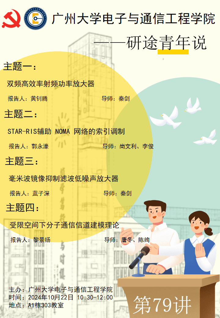 ”第79讲于2024年10月22日10:30-12:00在黄埔研究院A1栋303教室举行。本次主讲人为22级研究生黄钊腾、郭永濠、蓝子深和黎景扬。
