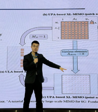 在会议上,章教授向与会者们从Near-Field Performance Analysis、Near-field Channel Estimation、Cell-Free-Aided Near-Field Systems三个方面,详细地讲述了面向6G的近场XL-MIMO通信和感知。
