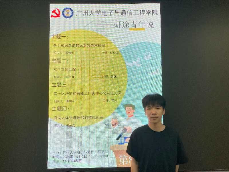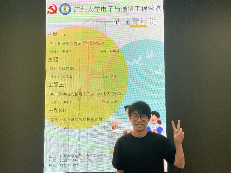 黄伟彬同学汇报的主题是基于知识蒸馏的无监督异常检测,他的讲解主要包含以下5个部分:选题背景与意义、现状及研究目标、关键技术、研究结果与应用、论文总结。在异常检测领域,异常样本的缺乏制约了监督异常检测的可检测范围和异常种类。为了打破受限于异常样本过少的局面,黄伟彬同学提出一种基于知识蒸馏的卷积编码器结构,其中包括预训练的教师,编码器,解码器。为了增强特征重建能力,他采用了三种策略。首先,解码器利用生成的高级语义嵌入块逐步还原特征,增强对无异常数据的学习。其次,使用特征金字塔匹配模式从教师提供的样式中进行知识迁移。最后引进上采样算子对特征图进行精准上采样。