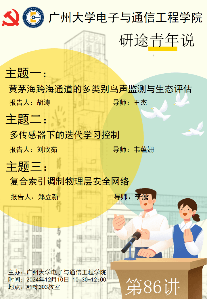 ”第86讲于2024年12月10日10:30-12:00在黄埔研究院A1栋303教室举行。本次主讲人为22级研究生胡涛、刘欣茹和郑立新。