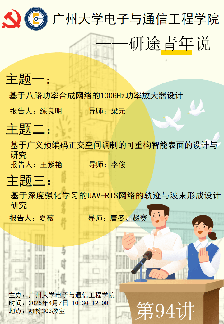 ”第94讲于4月7日10:30-11:30在A1栋303教室举行。本次主讲人为22级研究生练良明,夏薇和王紫艳。