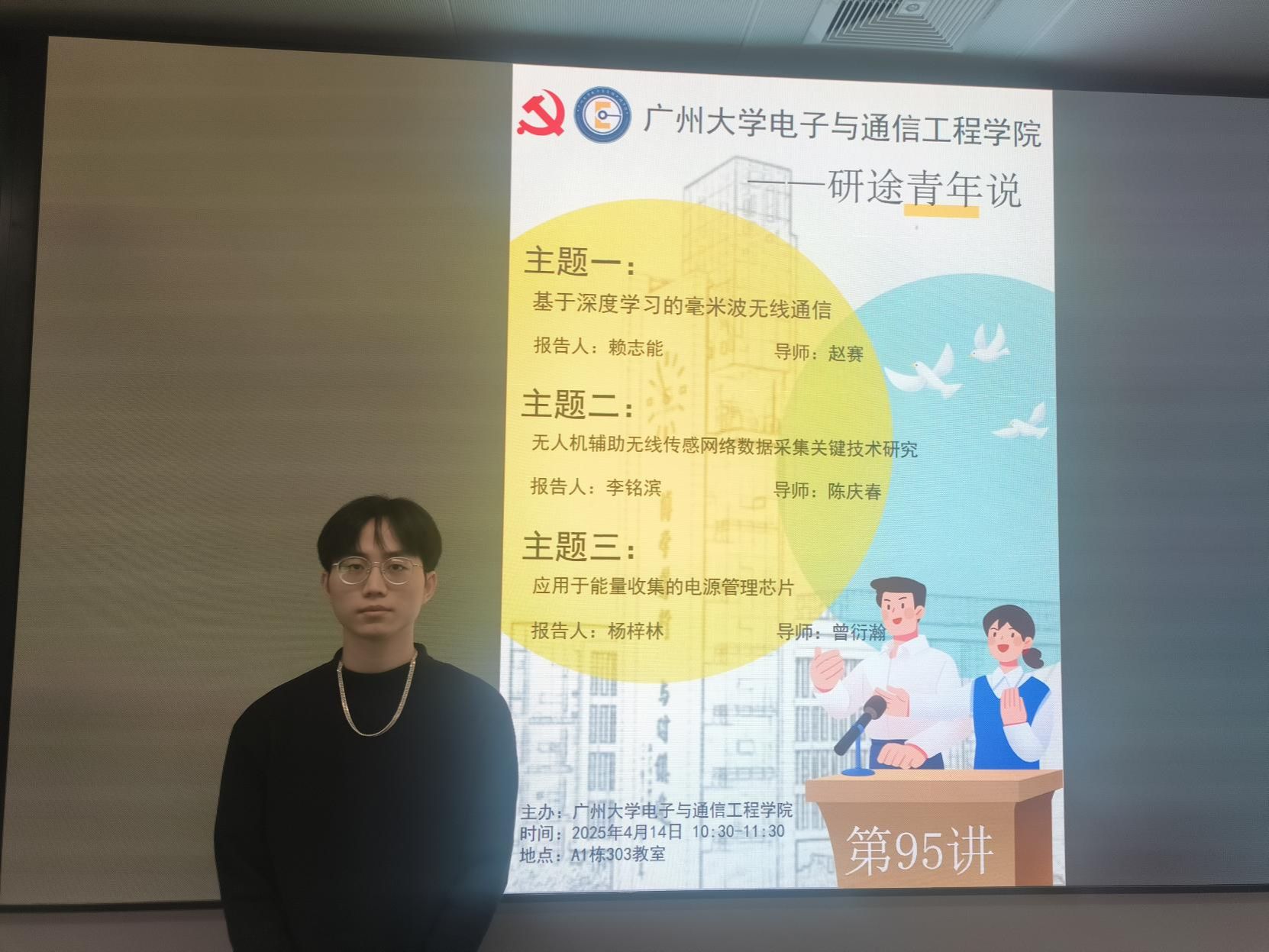 ”第95讲于4月14日10:30-11:30在黄埔研究院A1栋303教室。本次主讲人为研究生赖志能,李铭滨,杨梓林。