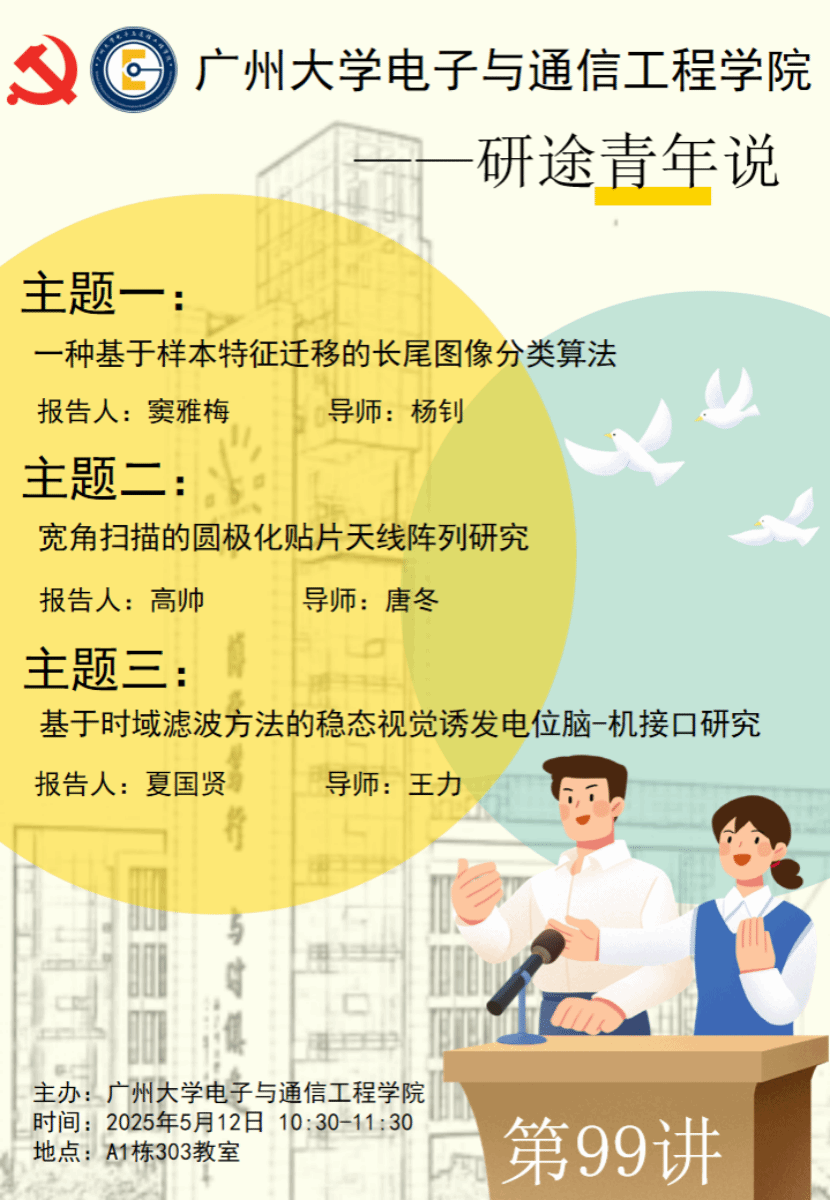 ”第99讲于5月12日10:30-11:30在黄埔研究院A1栋303教室。本次主讲人为研究生窦雅梅、高帅、夏国贤。