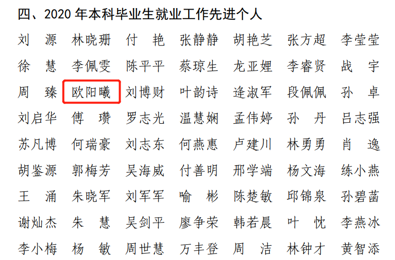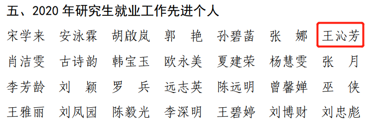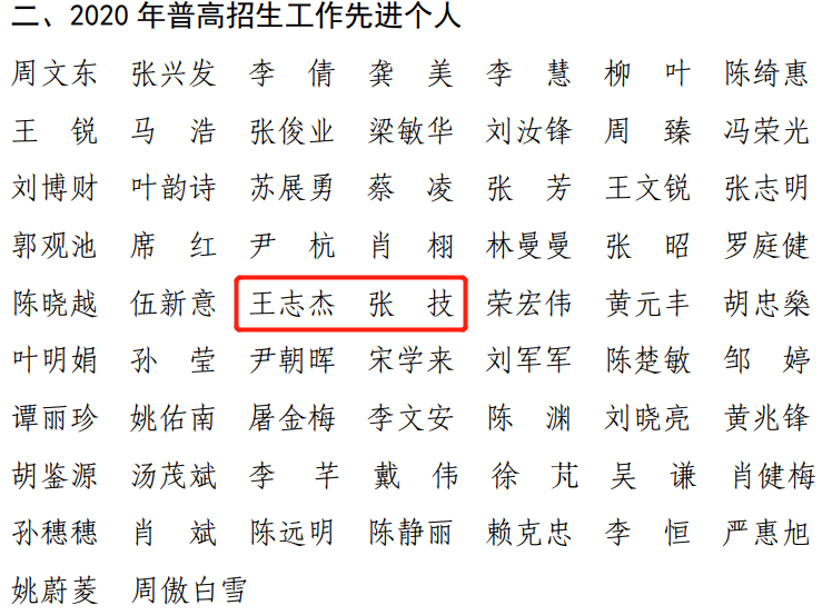 在2020年学校招生就业工作中,我院克难求进、卓有成效地完成学校招生就业各项工作,其中王志杰、张技老师被评为2020年普高招生工作先进个人,欧阳曦老师被评为2020年本科毕业生就业工作先进个人,王沁芳老师被评为2020年研究生就业工作先进个人。希望所有师生向先进学习,继续做好我院招生就业工作,不断开拓创新,再创佳绩。