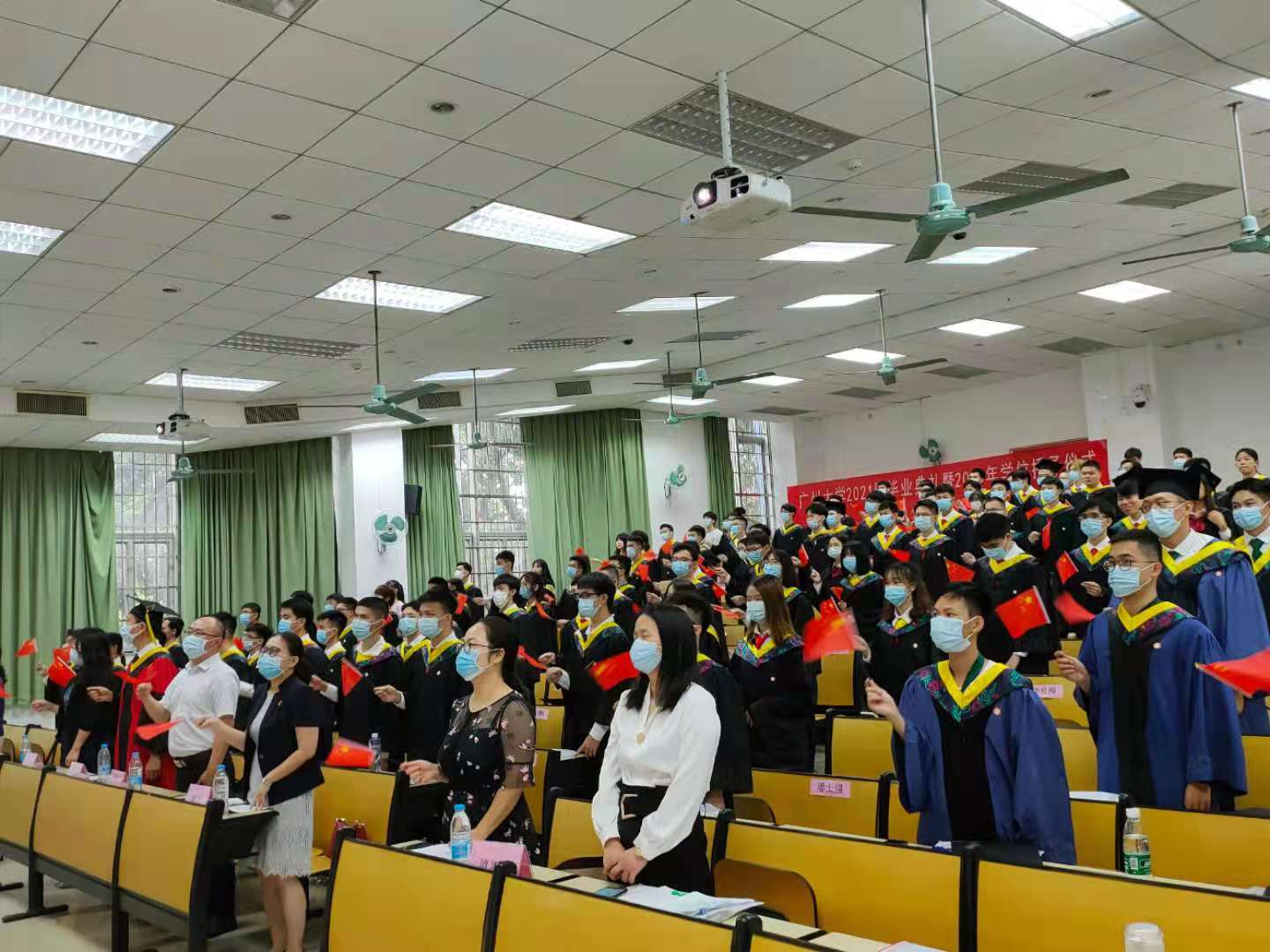 2021届毕业典礼暨2021年学位授予仪式,为毕业生送上最美的青春祝福。院领导、教师代表、班主任代表、学校发展规划处副处长肖华、实验室与设备管理处副处长蔡志华作为观礼嘉宾等参加分会场典礼。分会场文新106室由党委副书记谢玲主持,文新119室由副院长曾衍瀚主持。今年学校以“线下主会场+分会场+线上直播”的方式,10:00-11:00期间全体师生一起开始观看学校主会场毕业典礼直播。