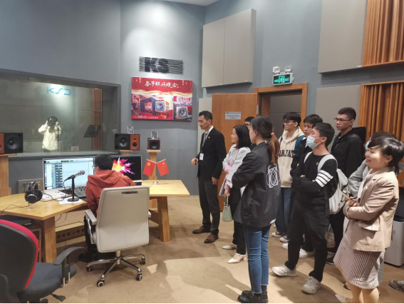 调研考察期间,公司团支部书记梁志对广大师生的来访表示了热烈欢迎,并希望校企双方今后能在人才共同培养、科技成果转化、党团校地共建等方面开展深入合作。积极向师生们介绍了锐丰科技的发展历程,在企业的发展过程中积极承担社会责任,做中国人自己的民族品牌。师生一行参观了公司专业的录音室和亚洲最大的消音室,并为徐晓彤同学现场录制了一首歌曲。随后,锐丰科技向大家播放锐丰文化宣传片,介绍公司相关项目案例。学院2017级电子信息工程专业毕业的校友魏思棋,杨学振陪同参观。