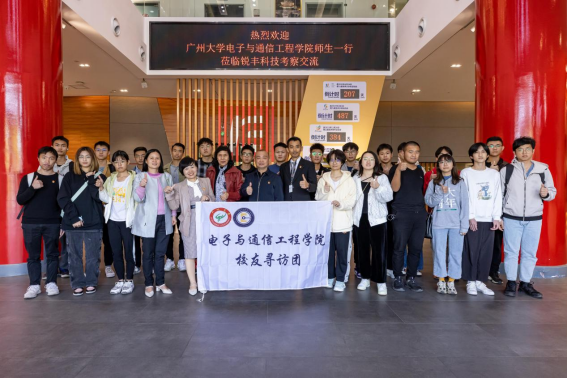 电子与通信工程系教授彭妙颜、学生第一党支部书记欧阳曦,学生就业工作负责人王沁芳、团委书记张虓带领部分学生前往校友企业广州市锐丰音响科技股份有限公司参观调研,双方参会人员就党团校地共建合作、学生就业等事宜进行了深入交流。