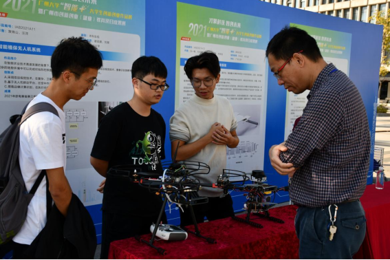 聚焦“双创教育”,本次成果展以“才聚科技,智创未来”为主题,深入呈现广州市高校创新创业工作取得的丰硕成果。开展当日,各参展项目通过实物展出、智能人机交互等多种方式,充分利用互联网思维和前沿科技手段,围绕芯片设计、深度学习、仿生机器、自动识别、人工智能、智慧城市等领域展示大学生双创成果,吸引了校内师生的广泛关注。