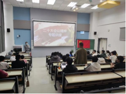 讲座以郑云龙老师提出的几个党的基本知识作为开场,包括:中国共产党是谁最先提出来的,共产主义和社会主义是谁最早提出来的,党的二十大的全称叫什么,召开时间和党的二十大报告的内容等相关问题,让同学们在思考中慢慢走进讲座,走进对党的二十大精神的领悟之中。期间,同学们积极发表自己的想法与见解,将学习热情慢慢推向高潮。