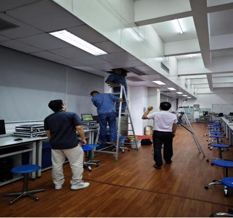 检查过程中,副院长尚文利了解到物联网实验室空调年久老化,存在漏水、制冷效率不足的异常情况,协调后勤部门抓紧修复故障,保证实验室空调的正常运行,做好学生的服务工作。