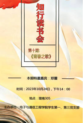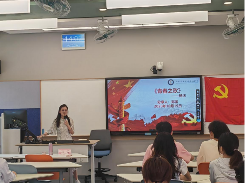 的郑蕾老师进行《青春之歌》一书的导读,参加此次读书会的还有学生第三党支部书记王沁芳。