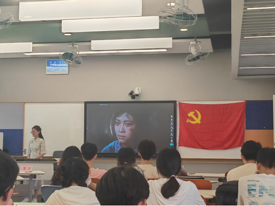 郑蕾老师重点向大家讲述了这本书的情节。本书取材于30年代北平的学生运动,郑蕾老师根据“逃婚、绝处逢生、成家、除夕晚会、参加游行、分手、第一次被捕、乡下教书、第二次被捕、学生运动”这十个关键情节梳理了《青春之歌》那厚重历史时期中,一群有志革命青年在中国共产党的领导下,开展一系列挽救国家危亡的爱国运动。在经过牺牲、流血之后,主人公林道静与她的好伙伴们一起成长,最终成长为成熟的革命者。接着,郑蕾老师讲到这部小说的创作意义时,给同学们播放了由北京电影制片厂拍摄的《青春之歌》同名电影中的一个片段,林道静第一次被捕入监狱中,与共产党人林红的一段对话,受到林红的教育影响与锻炼,林道静也开始走向成熟,对话中林道静提到“希望为党、为人民最崇高的事业献出我的生命”,但革命者林红坚定地说:“一个共产党员和革命者永远不会死!”。郑蕾老师向同学们重复着这句话,感叹着当时的革命知识分子的乐观和无畏。