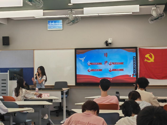 在读书会的最后阶段,由学生党员谢镁楠为与会的党员同志分享读书心得。谢镁楠主要从情节与人物的角度进行分享。《青春之歌》通过对当时形形色色各种类型的青年知识分子的描写,既反映了那个风云变幻的时代又提炼出革命的思想主题,在处理人物形象时作者避免了简单片面的处理,而是以细腻的笔触伸入到主人公的内心世界中,真实地刻划人物的心理,较为全面地把握了人物的多重侧面,因而具有极强的艺术感染力。