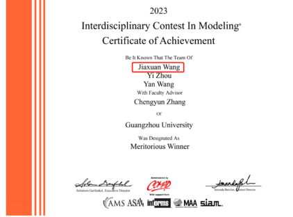 竞赛方面,获得省部级以上奖项4项,最高奖项为美国大学生数学建模一等奖。