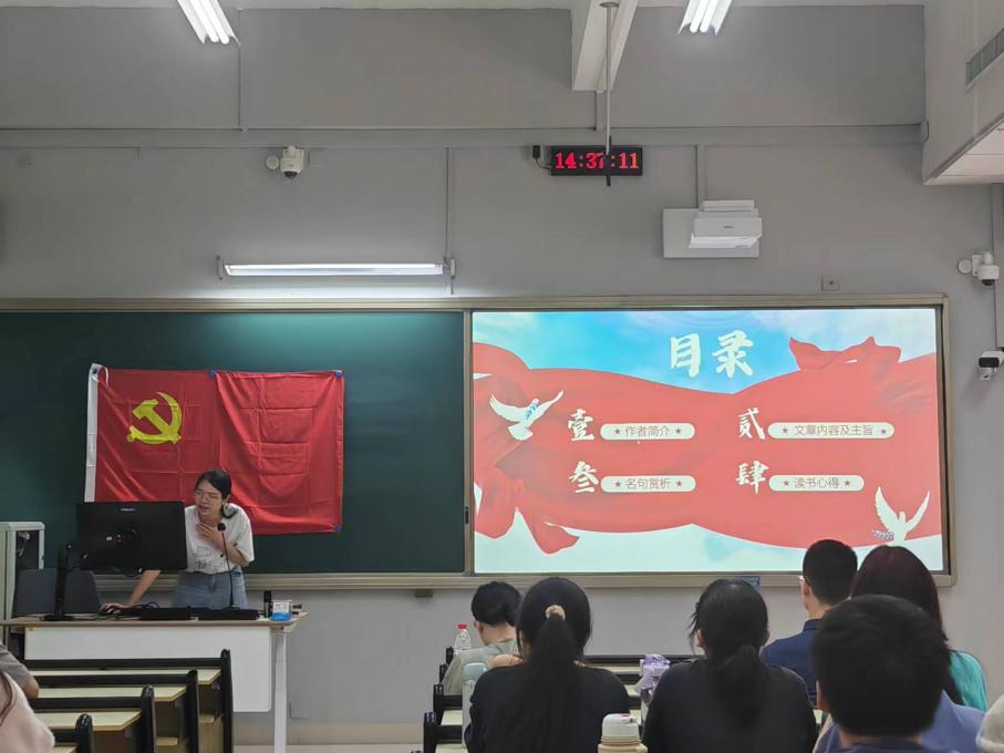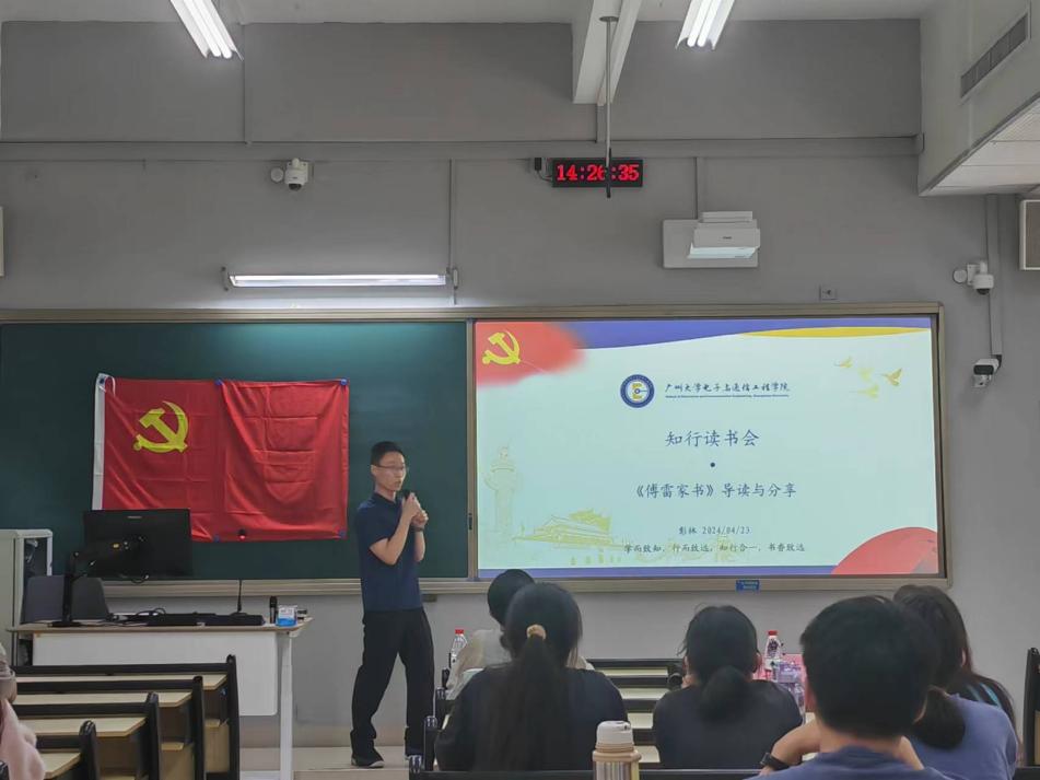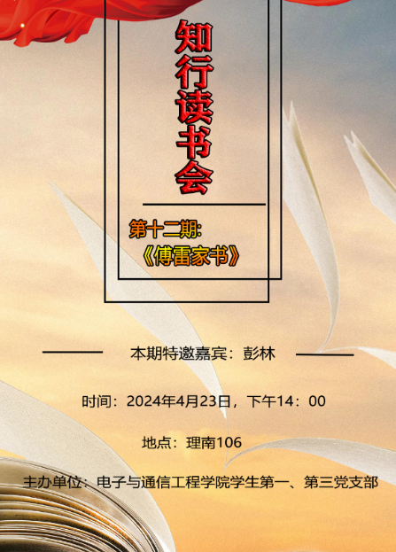 物联网工程系党员教师彭林老师进行《傅雷家书》一书的导读,参加此次读书会的还有学生第一党支部书记欧阳曦。