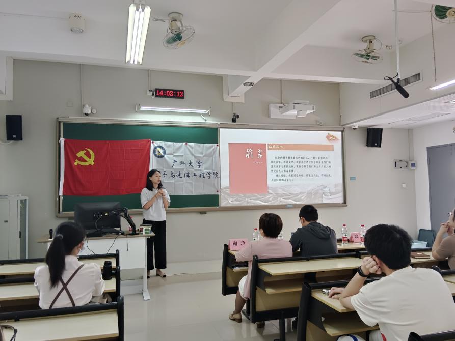 浣沙老师首先对《红色家书》这本书进行了简单概述,她谈到阅读红色家书,使自己不仅感受到革命先烈们的喜怒哀乐和爱恨情仇,更能体会到他们身为共产党人的革命信念与豪情,而后重点分享了阅读后印象深刻的几封家书并为老师和学生党员们朗读部分摘录。