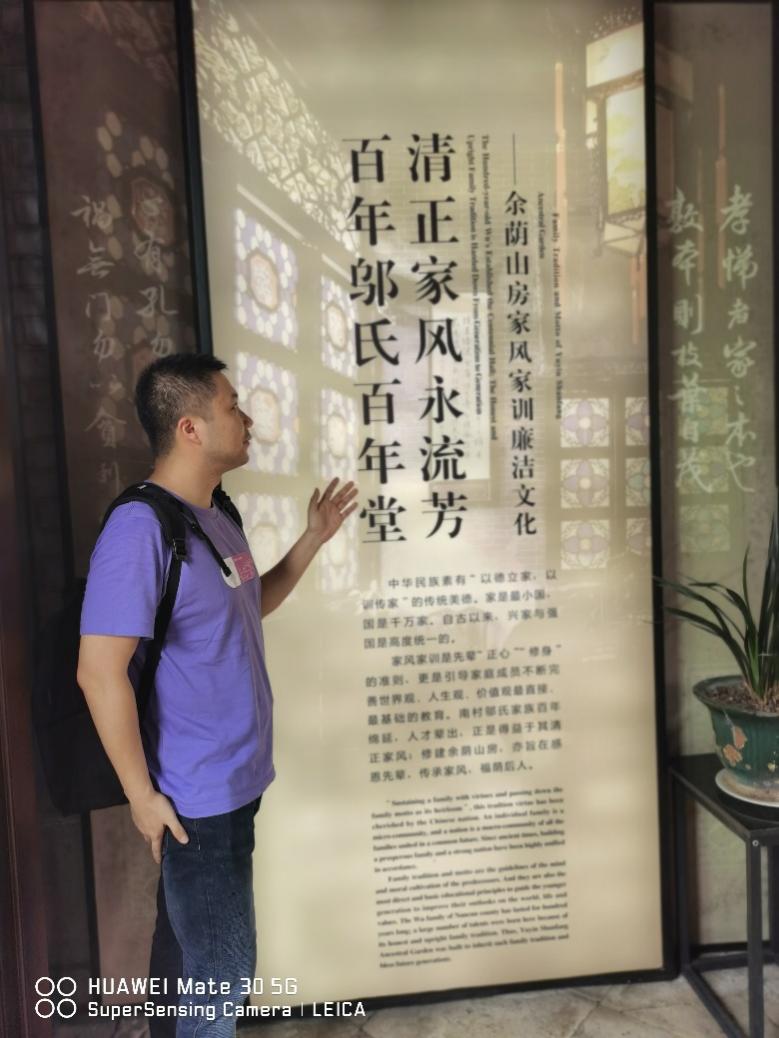 教师党员在专业的讲解员引导下,首先参观了“百年邬氏百年堂 清正家风永流芳”家风家训廉洁文化主题展览,随后漫步于家风学堂、玲珑水榭等地,深切感受到了“修身、齐家、治国、平天下”这一中华传统优秀家风家训的深厚底蕴。在此展览区,党员们学习了习近平总书记关于家风的重要论述,总书记认为,家风是社会风气的重要组成部分。家风好,就能家道兴盛、和顺美满;家风差,难免殃及子孙、贻害社会。家风家训展让党员们了解到邬彬家族清正廉洁、勤政爱民的精神,受益匪浅,随后大家集中观看了廉洁文化微电影《清风》。