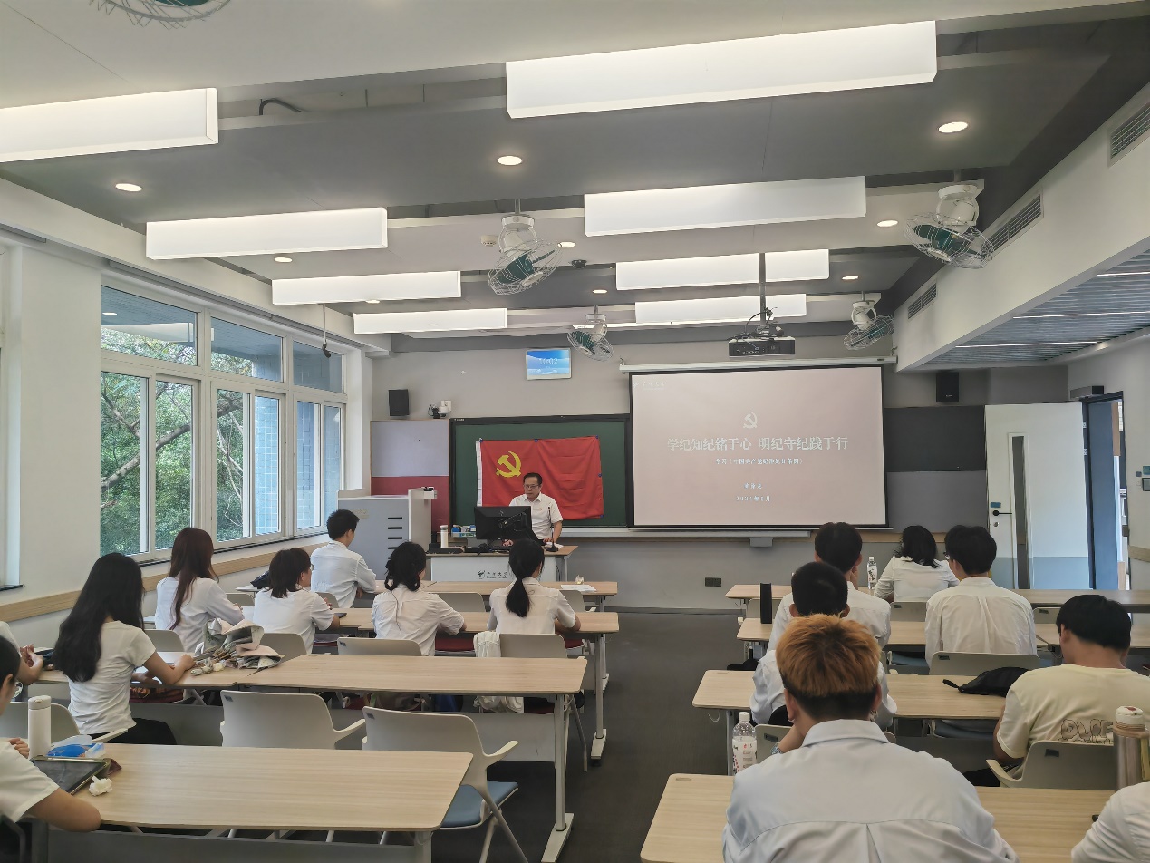 学院党委书记陈泽龙为即将踏上新征程的毕业生党员们讲述了最后一堂深刻而富有意义的党课:“学纪知纪铭于心 明纪守纪践于行”。此次党课不仅是对毕业生们在校期间党性教育的总结,更是对他们未来人生道路的指引和期望。