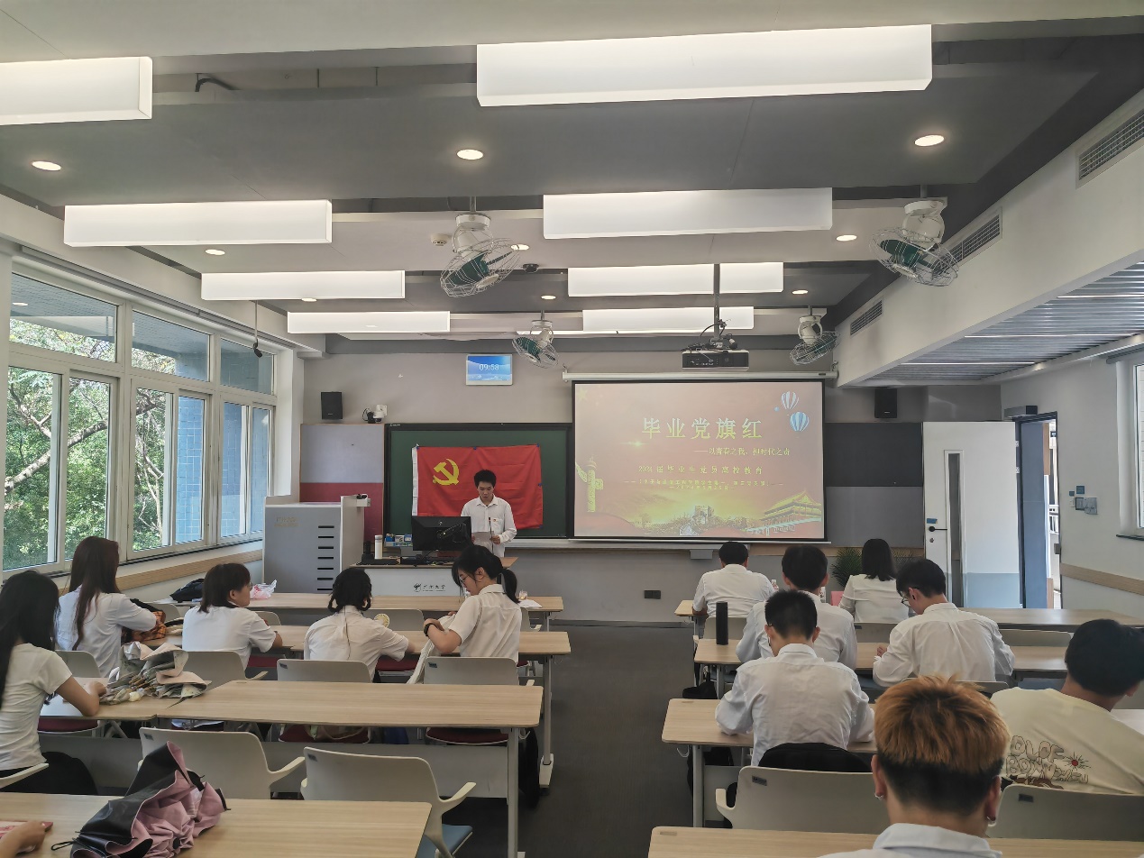 学生第一、第三党支部在理南306室开展了“毕业党旗红”:以青春之我、担时代之责暨2024届毕业生党员离校教育活动。学院党委书记陈泽龙、学生第三党支部书记王沁芳出席本次活动。