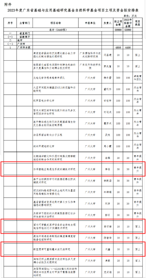 11月10日,广东省基础与应用基础研究基金委员会公布了2023年度广东省基础与应用基础研究基金自然科学基金拟资助项目3449项。我院共有3项项目获批立项,其中李俊老师获青年提升项目立项1项,曾衍瀚老师和代鑫老师各获面上项目立项1项。