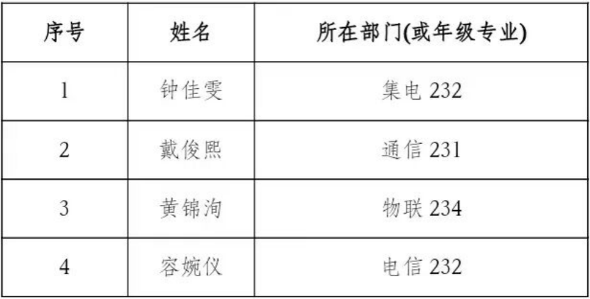 学生第一、第三党支部教育考察,答辩,支部委员会讨论同意,拟确定钟佳雯、戴俊熙、黄锦洵和容婉仪同志为发展对象,并就有关事项公告如下: