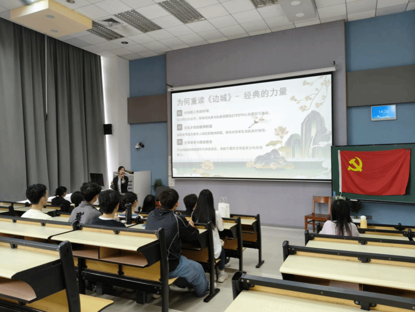 为什么我们依然需要读《边城》?”杨文彪老师以这个直击人心的问题开篇,引发了在场党员思考。他认为《边城》不仅在于优美的文字与动人的故事,更在于其传递的人性本真与精神追求,这正是当代青年需汲取的精神养分。随后,杨老师从书籍介绍、创作背景、读《边城》的当代意义以及《边城》的精神内核四个维度,深入讲解这部经典。