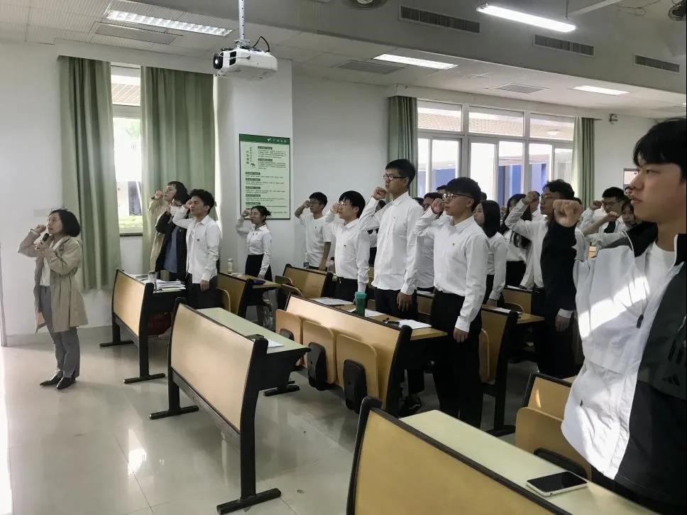 为了激励新发展党员坚定理想信念、牢记入党初心,2020年12月05日,在理南103举行新发展预备党员入党宣誓和老党员为新成员佩戴党员徽章仪式。