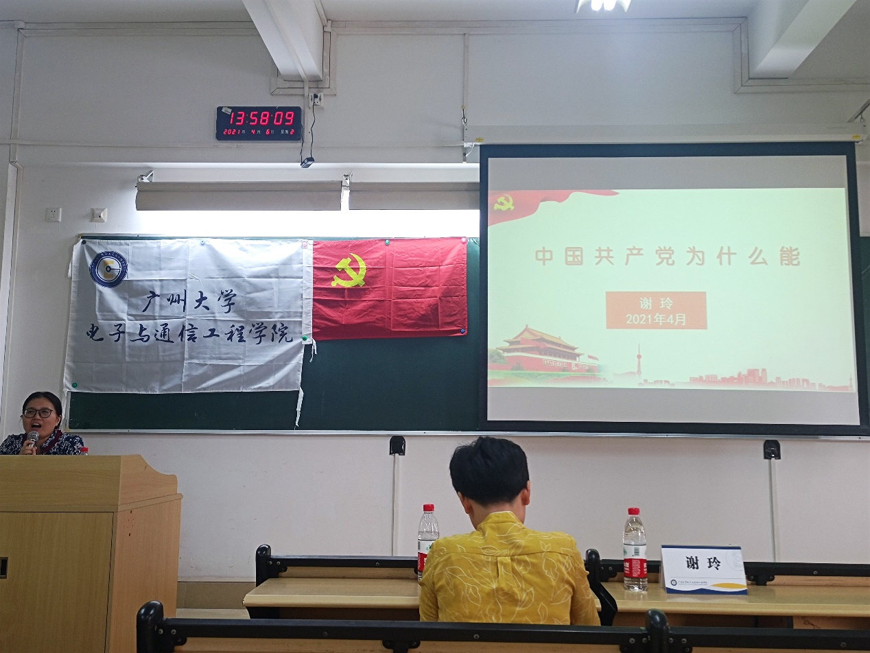 谢玲书记先将中国共产党发展历程生动比喻为创业组织逐步上市引入“中国共产党为什么能”的主题,接着讲座从“科学的理论指导”、“坚定的理想信念”、“强大的组织优势”、“坚实的群众基础”和“彻底的自我革命”五个方面详细讲解了共产党的发展历程,分析中国共产党一路走来的制胜秘诀。