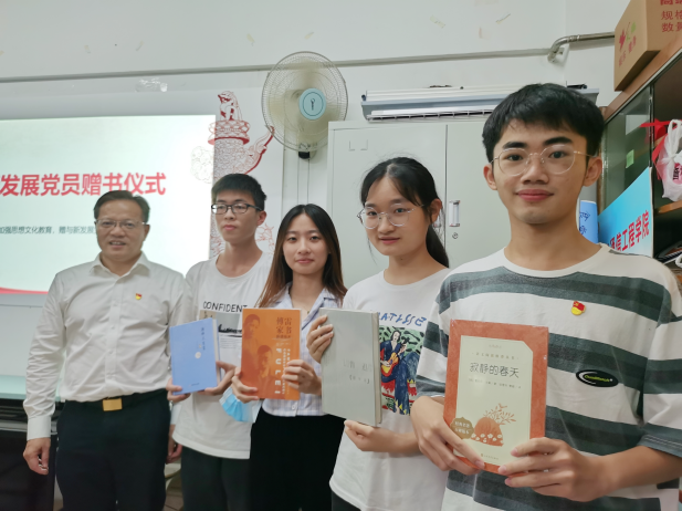 学生第一党支部全体学生党员在竹苑3栋五室一站举行新一届支部委员会委员聘书发放、新发展党员赠书、新发展党员宿舍挂牌仪式。学院党委书记陈泽龙老师、副书记谢玲老师、学一党支部书记欧阳曦老师出席此次活动。