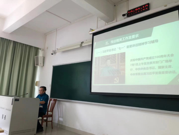 为纵深推进党史学习教育和“我为群众办实事”实践活动,按照学校党史学习教育小组工作安排,我院在近期开展了围绕学习贯彻习近平总书记“七一”重要讲话精神学院党委书记、副书记面向学院师生讲党课活动。9月2日,学院党委书记陈泽龙给全院教职员工开展了题为“学习习近平总书记‘七一’重要讲话精神”的党课,党课围绕学习习近平总书记在讲话中提到的“四个伟大成就向世界庄严宣告”、“中国共产党成立的意义”、“百年奋斗的历史主题”、“伟大建党精神”、“九个必须”、“三个不负”等方面进行了深入学习,要求全体教师要把深入学习贯彻习近平总书记“七一”重要讲话精神作为党史学习教育的核心内容,持续抓好专题学习、专题研讨、宣传宣讲工作,进一步引导党员师生从党的百年奋斗历程、重大成就、历史经验中汲取智慧和力量,牢记初心使命、忠诚履职尽责,为学校“十四五”事业发展规划和推进高水平大学二期建设做出更大的贡献。