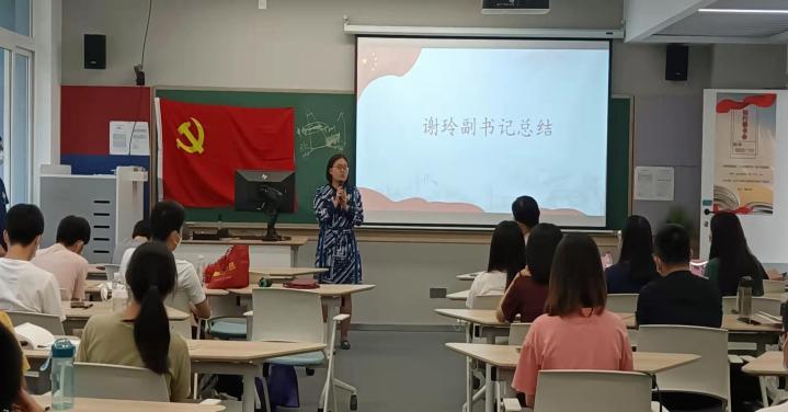 公共管理学院副教授姚华松给同学们进行导读,学院党委副书记谢玲、学生第一党支部书记欧阳曦、学生党建理事会负责人詹格亮老师参与此次活动。