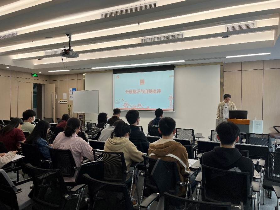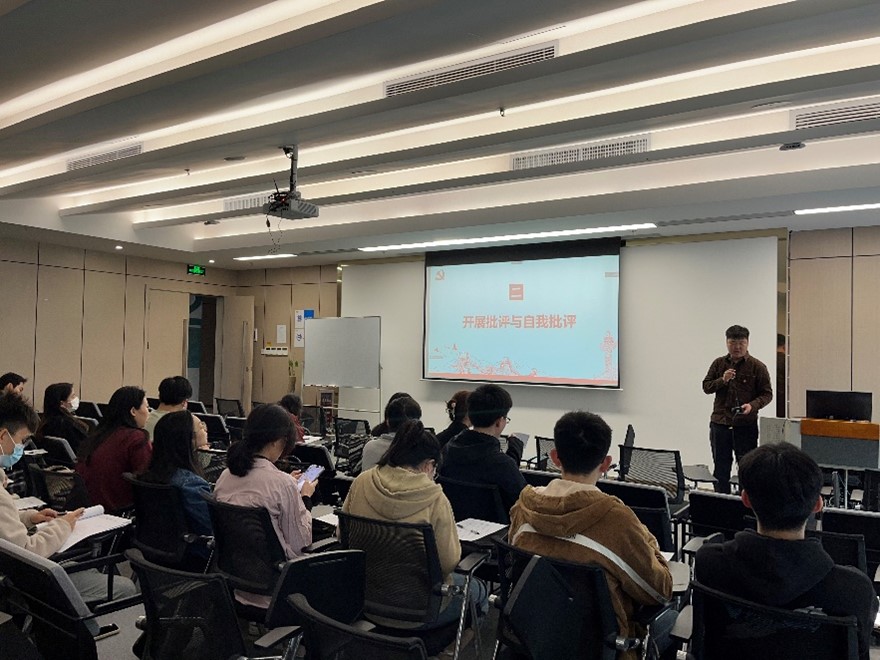 会议第二项议程,批评与自我批评。王志杰书记首先向全体党员作了工作总结,汇报了2022年度学生第四党支部党建工作的落实情况,并代表党支部开展批评与自我批评,认真摆问题、检视不足,深刻剖析根源。
