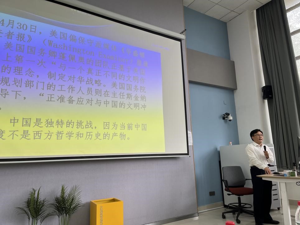 首先,王超教授为大家讲述了中国近代化的探索,从数次反侵略战争到洋务运动,再到戊戌变法,中国始终找不到一条正确出路,而马克思主义的出现,帮助中国从西方逻辑转东方逻辑,从资本主义逻辑转社会主义逻辑,近代中国需要构建新政治体系,马克思主义正是中国所需要的,中国共产党就是在这样的背景下诞生了。