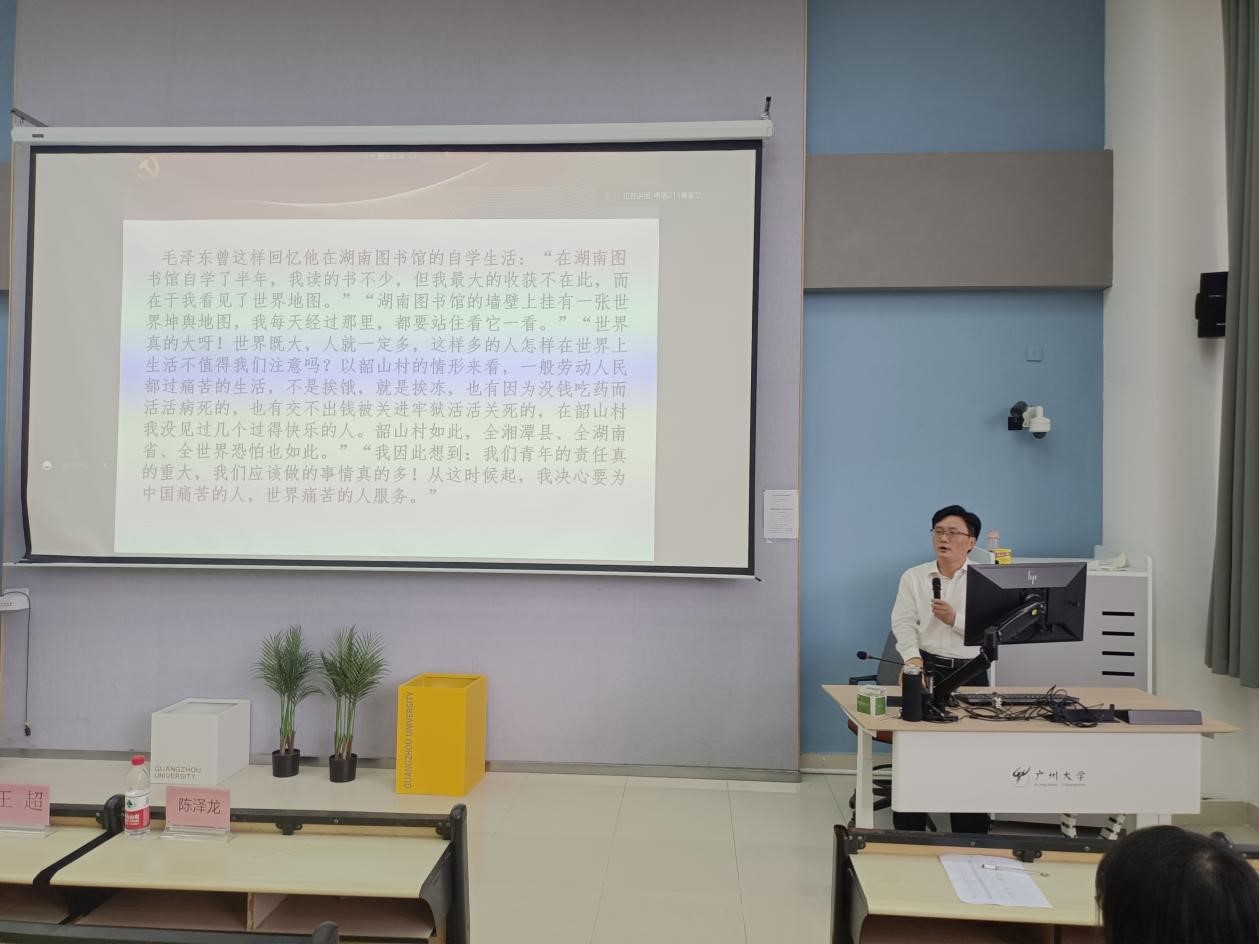 接着,王超教授用生动的语言、详实的案例、清晰的数据给同学们在唯独中国共产党破解了中国问题为什么只有中国共产党能?唯独中国共产党实现了人的改造为什么只有共产党能?两个方面重点阐释了中国为什么需要马克思主义、马克思主义改变了中国什么、马克思主义怎么改变中国。源”就是中国共产党能通过革命锻造把最先进的思想马克思主义与最落后的农民进行力量再造。