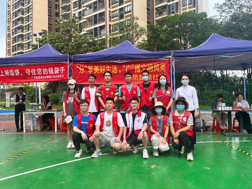 学生第四党支部党员积极下沉社区,参于到社区工作人员在凤语湾小区中的开展系列政策宣传活动中。