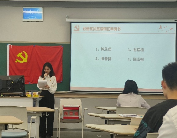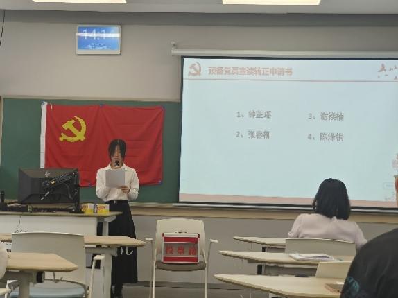 学生第三党支部举行关于钟芷瑶等4名预备党员的转正大会