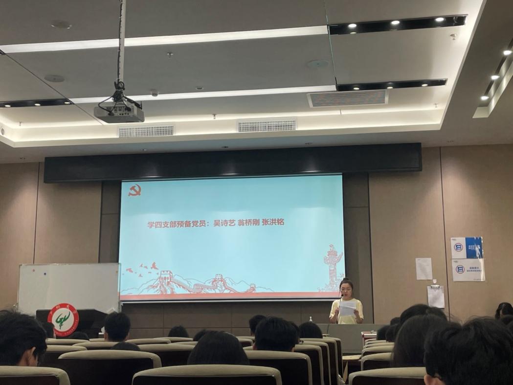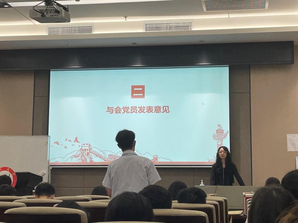 本次会议共有四项议程,一是支部书记讲党课,二是审议、讨论、表决党组织是否接收关于吴诗艺等3名预备党员的转正申请,三是开展关于秦博文、罗敏2名发展对象转为预备党员的通表大会,四是支委换届竞选。