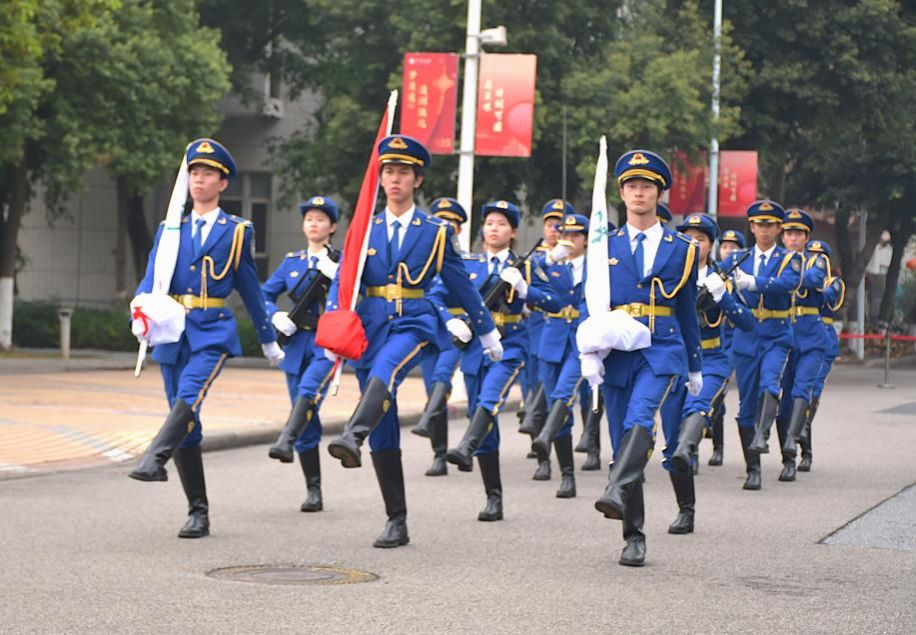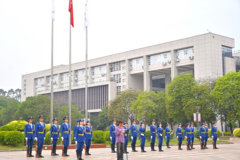国旗护卫队迈着整齐有力的步伐护送国旗入场,队员身姿笔挺、眼神坚毅。国歌奏响,升旗手挥臂升旗,师生庄严肃立、高唱国歌。随后,校旗在校歌声中升起,随风飘扬,彰显学院蓬勃朝气与师生集体荣誉感。